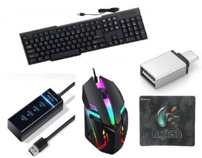 Di Innovating Technology DI 5 COMBO OF ( KEYBOARD, RGB MOUSE, HUB, MOUSEPAD AND C TYPE OTG) Combo Set